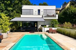 Designervilla mit einem eigenen Hausaufzug | Pool und Blick auf die Grünfläche