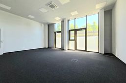 Repräsentative Geschäftsfläche mit hohen Räumen und Glasfront