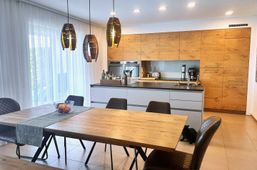 Moderne Doppelhaushälfte in Steinhaus, Garten, Terrasse mit Sauna, Doppelgarage und vollmöbliert - einziehen & wohnen!
